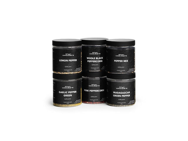 Verwen uzelf met culinaire uitmuntendheid met onze premium Pepercollectie van ONYX COOKWARE™. Zorgvuldig samengesteld om uw culinaire avonturen te verheffen, combineert deze pepercollectie een symfonie van pepersoorten, elk ontworpen om diepte, complexiteit en een uitbarsting van smaak aan uw gerechten toe te voegen!
