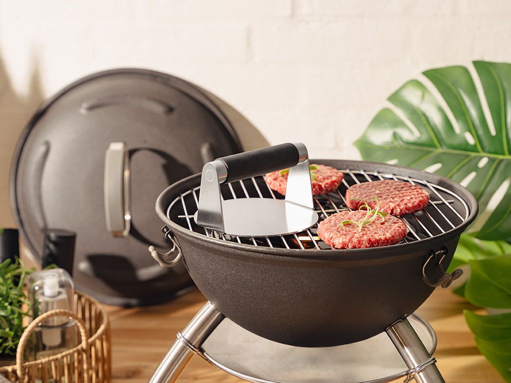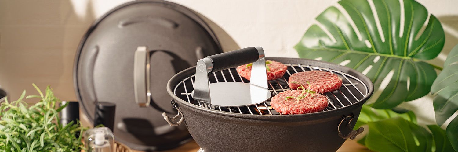 Maar dat is nog niet alles – we hebben extra stappen gezet om ervoor te zorgen dat uw ervaring vlekkeloos is. Het hittebestendige siliconen handvat biedt een veilige grip, en biedt niet alleen duurzaamheid, maar ook veiligheid en comfort bij elke klap. Geen zorgen meer over hete handvatten of gespannen polsen – het draait allemaal om perfecte burgers zonder compromis.