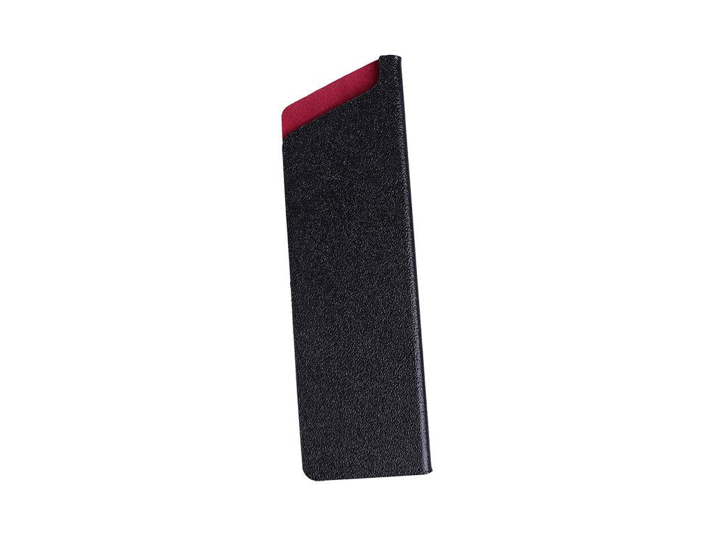 STIJLVOL DESIGN IN ZWART POLYPROPYLEN MET ZACHT ROOD INTERIEUR FLOCKING, TWEE MATEN BESCHIKBAAR VOOR MESSEN VAN VERSCHILLENDE MAAT