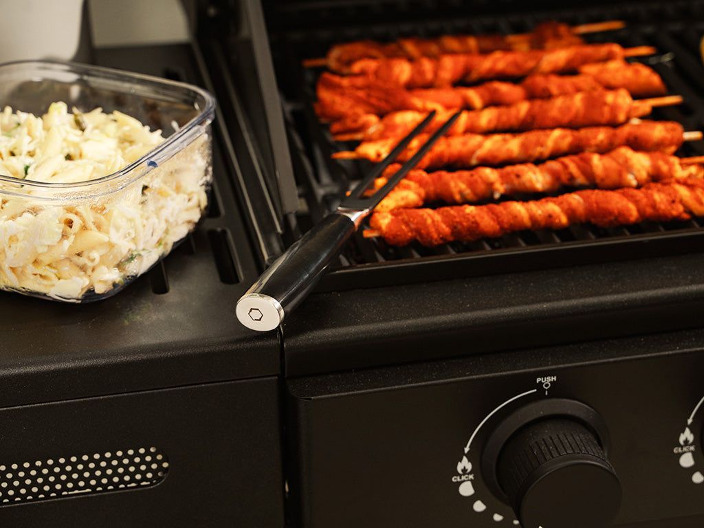 De ONYX COOKWARE™-vleesvork heeft een hoogwaardige ABS-handgreep die niet alleen zorgt voor perfecte balans en gewichtsverdeling, maar ook water- en vuilafstotend is, wat hem in de keuken veiliger maakt. Als je het ons vraagt, zien ze er ook fantastisch uit!