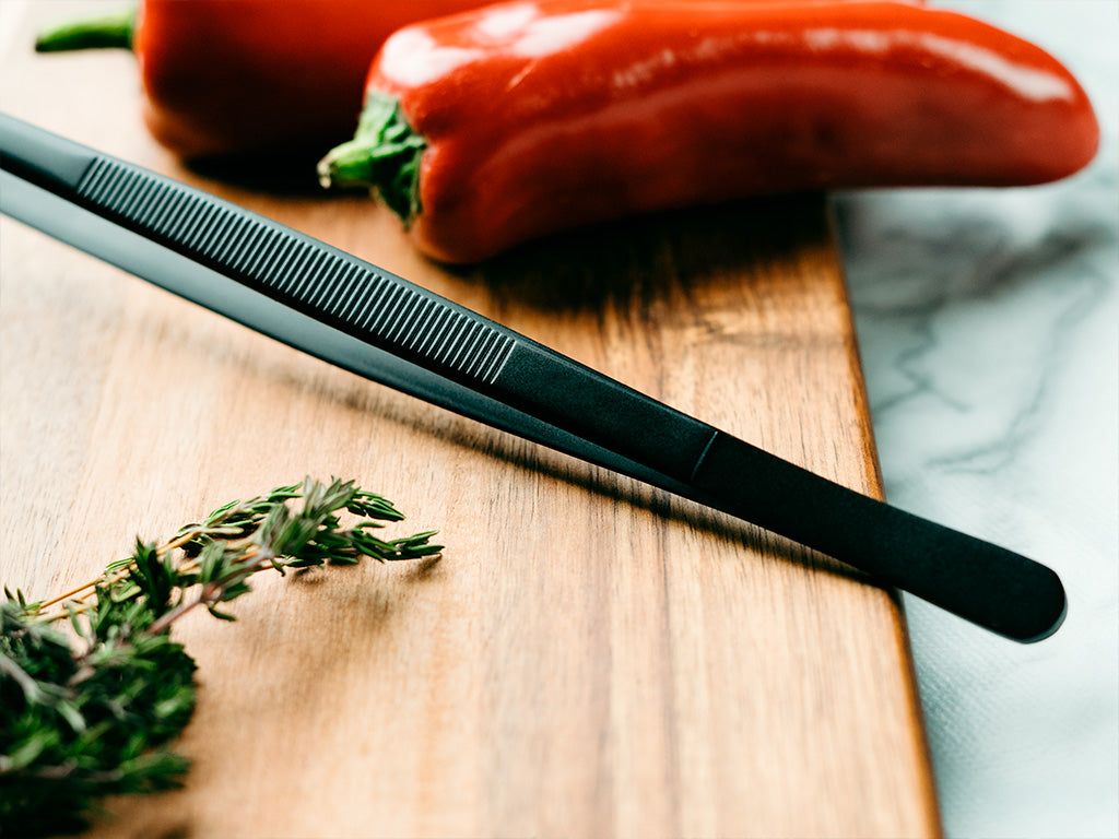 De uiteinden van de tang zijn voorzien van scherpere, kleinere ribbels aan beide kanten. Dit maakt het ontwerp van de ONYX COOKWARE™ KEUKENTANG optimaal om zelfs het meest delicate, luxe of gladde voedsel op te pakken, vast te houden en om te draaien.