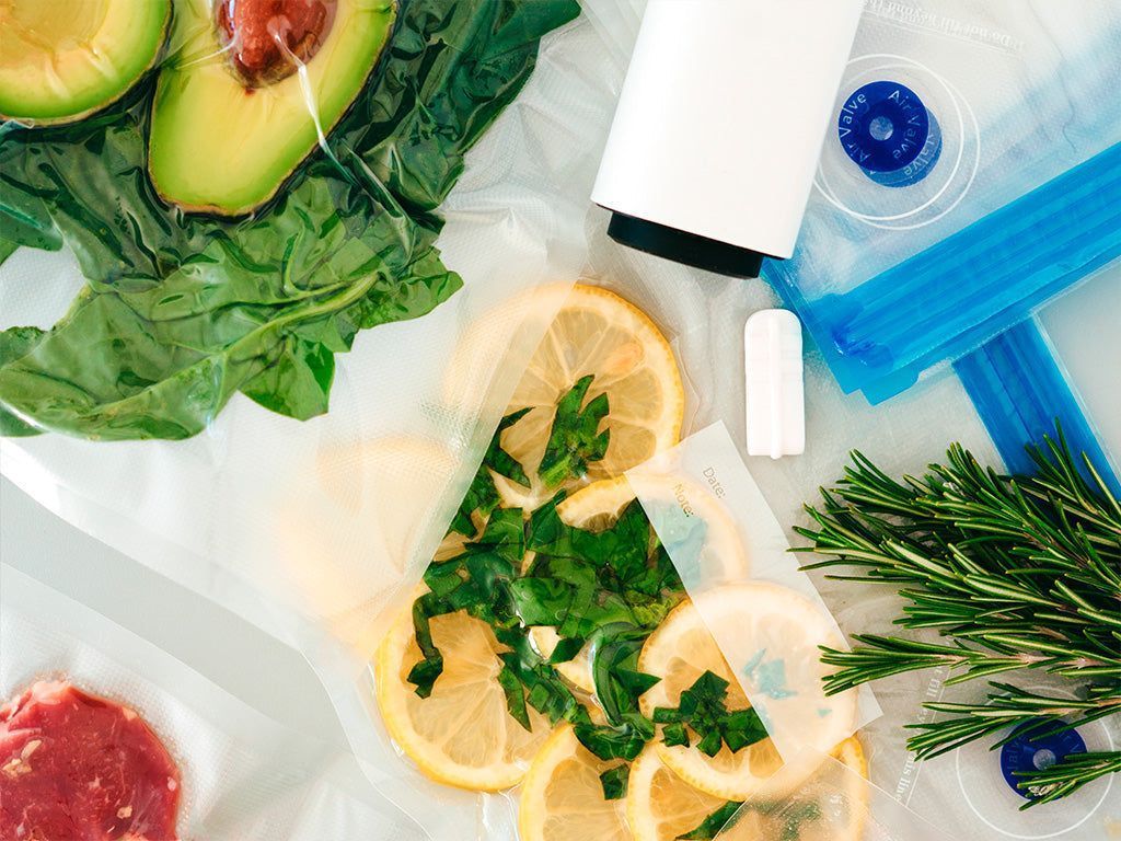 Denk eraan dat vacuüm sealen niet alleen bedoeld is voor restjes. Onderschat de waarde van het langer bewaren van uw verse ingrediënten niet. Van rijst en pasta in de voorraadkast, tot verse net aangekochte vleeswaren en groenten in de koelkast, alles kan langer vers gehouden worden met de vacuümoplossing van ONYX COOKWARE™.