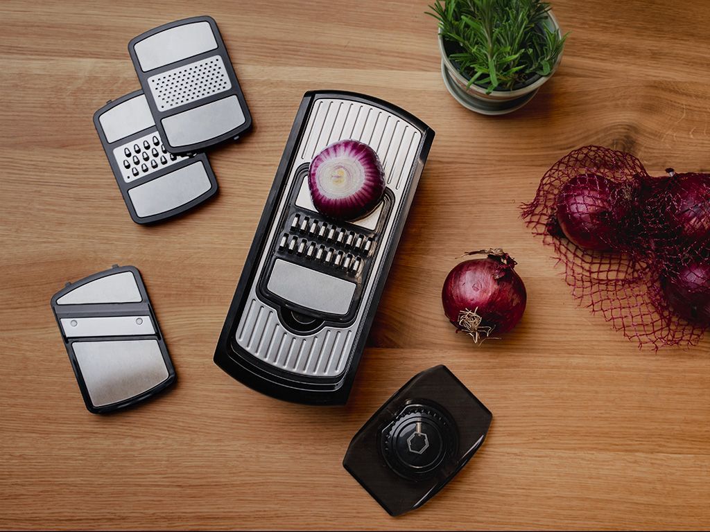 • Vier veelzijdige messen voor snijden, raspen en julienne snijden