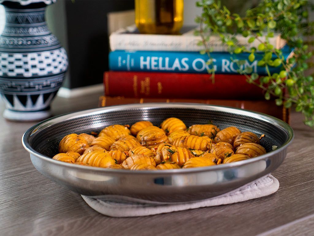 Stel je voor dat je de koekenpan in de oven wilt plaatsen, maar je realiseert je dat je oven vrij klein is, of dat je al tonnen andere dingen in de oven hebt en simpelweg geen koekenpan met handgreep erin past. Nog een probleem dat onze handgreeploze koekenpannen oplossen!